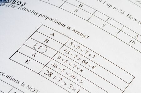 Answer sheet for test. English test choose the right answer. English grammar test sheet. Multiple choice test. Exam for students in school, college and university. USA or English Education concept