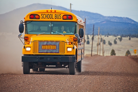 Bright yellow school bus against a clear blue sky, symbolizing education