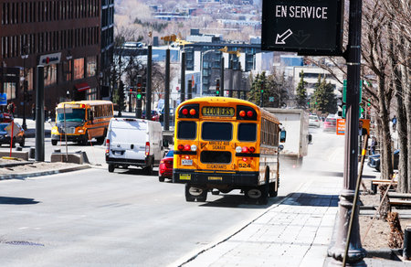 School bus on the street in Quebec city.