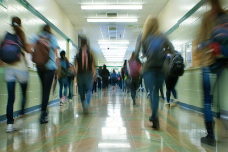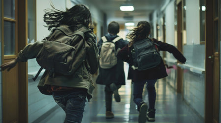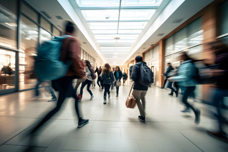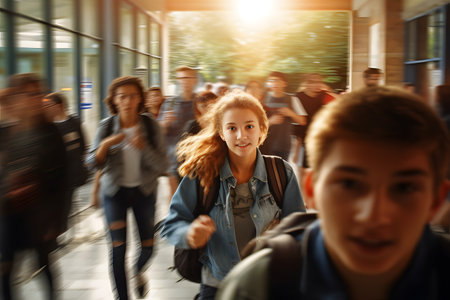 Excitement and anticipation students rushing through the school corridor on first day back