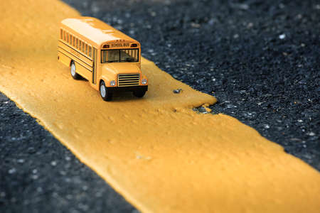 School bus toy model in closeup shot