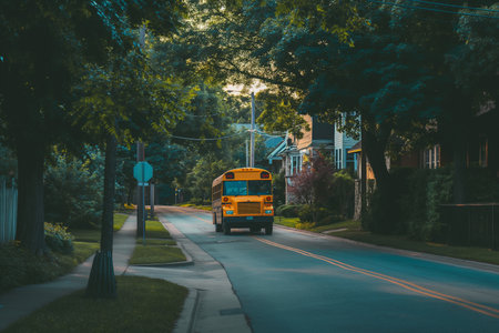 School bus on the street at sunset. Back to school concept.