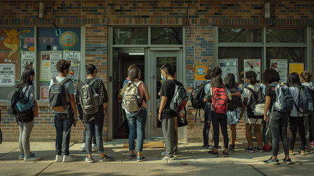 Back to School Buzz: Students Gathering in the Yard