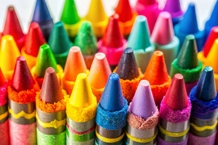 A captivating close-up of vibrant crayons showcasing a variety of colors, perfect for art projects and creative activities. Ideal for education and inspiration.