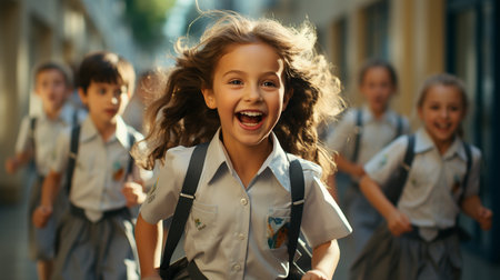 Generative AI : Happy children girls girlfriend schoolgirl student elementary school