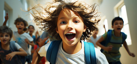 Exciting Back to School Kids running for Class Adventure