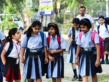 NEW DELHI, INDIA - APRIL 1: Schools open for new session, children arrive in the morning at Dwarka in South West Delhi, on April 1, 2024 in New Delhi, India. (Photo by Vipin Kumar/Hindustan Times )