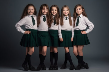 Generative AI : Happy children girls girlfriend schoolgirl student elementary school