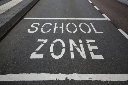 School zone road sign with speed limit 40 during before and after school hours in NSW, Australia. Road safety concept