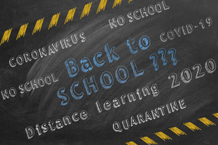 Back to School? Distance learning, no school, coronavirus, quarantine. Lettering on blackboard.