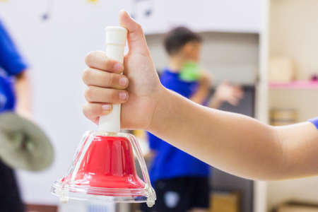 The children are playing the colourful bell