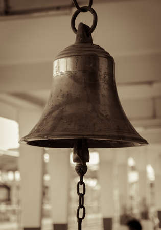 Brass bell in railroad station