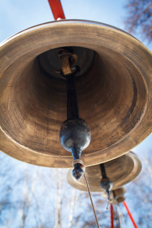 A closeup shot of a golden bell