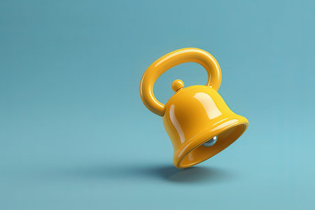 3D render of a yellow bell isolated on blue background with shadow