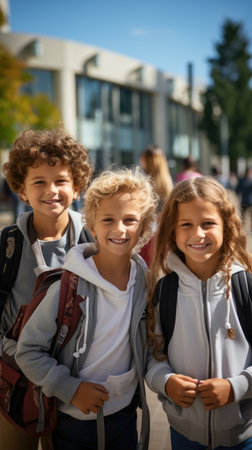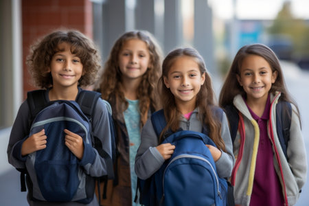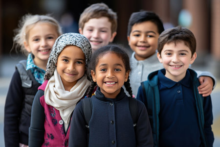 portrait of a group of elementary school students on their way to class, created with generative ai