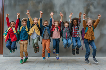 Children jumping with joy in front of wall