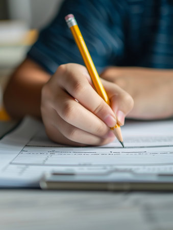Authentic Close Up Shot of a Young Person Writing with Pencil in Notebook. Teenager Making Homework for School. Education Concept.