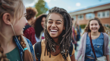 A girl laughing with her friends. The image captures a moment of joy and connection.