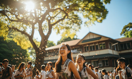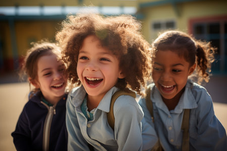 Generative AI : Happy children girls girlfriend schoolgirl student elementary school