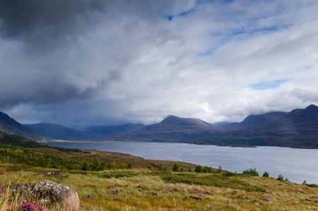 Storm above Loch Torridon as rain approaches Torridon mountains and loch