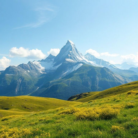 Beautiful alpine landscape with mountains and blue sky, Switzerland.
