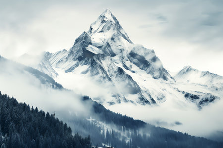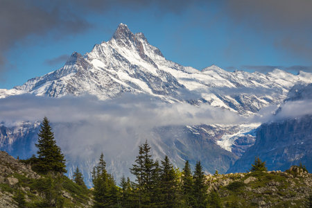Misty Mountain above Grindelwald, Snowcapped Bernese Swiss alps, Switzerland