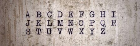 Panoramic image. Alphabet written with an old typewriter in vintage design