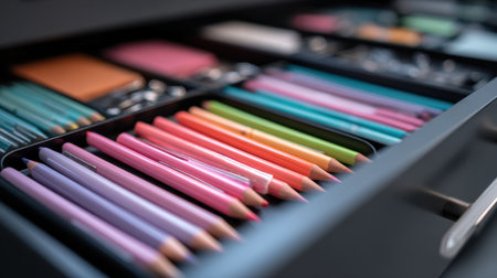 This image showcases a neatly arranged drawer filled with vibrant stationery items, highlighting an organized and efficient workspace for enhancing creativity and productivity.