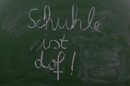 Chalkboard in a classroom with the german words School is stupid