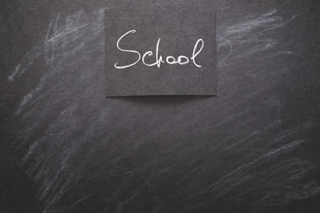 word school handwritten on black chalkboard. education learning and studying concept. empty space.