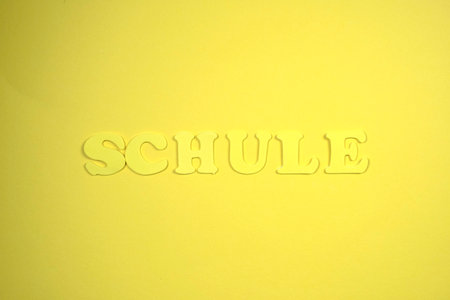 Word Schule Means School. Yellow background, yellow letters
