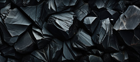 Mysterious obsidian stone background with glossy black and sharp fractured edges, dark and sleek.