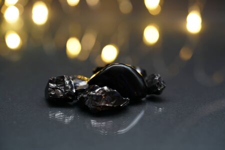 Close-up images of black color charcoal on black background that made from natural wood which represent energy power concept or healthy or use for absorb odor in the room or refrigerator.