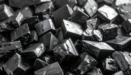 AI Generated. Graphite fragments densely packed showcasing unique textures and varying shades of dark gray