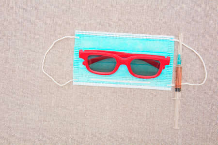 Medical vaccine against close-up, vaccination, injections, syringes, medical masks