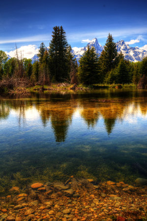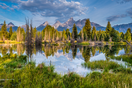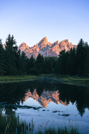 Reflection of Grand Teton National Park, Wyoming, USA.