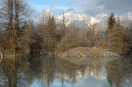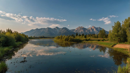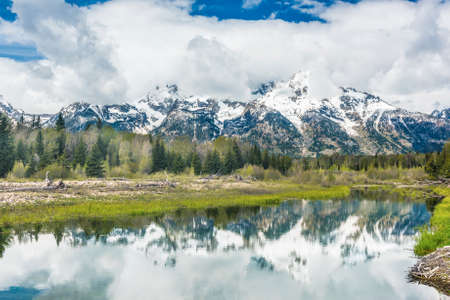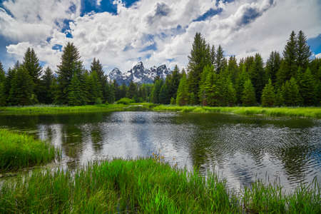 afternoon shot of a pond at schwabachers landing in grand teton national park in the united states