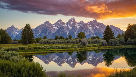 Grand Teton National Park at sunset, Wyoming, United States.