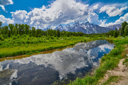 Grand Teton National Park in the Summer with blue skys and reflections