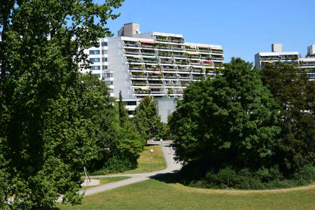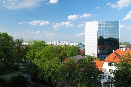 Office building and a factory seen in Augsburg (Bavaria, Germany)