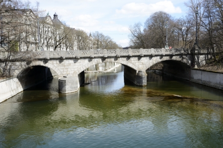 Maximiliansbrucke, famous bridge thru river Isar, Munich, Germany