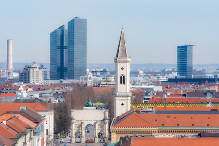 View over Munich at the early morning from a high angle view at springtime, bavaria, germany,
