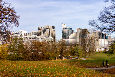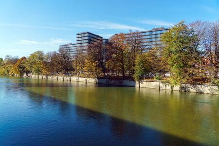Munich, Germany - October 20, 2017: European Patent Office building and Isar river