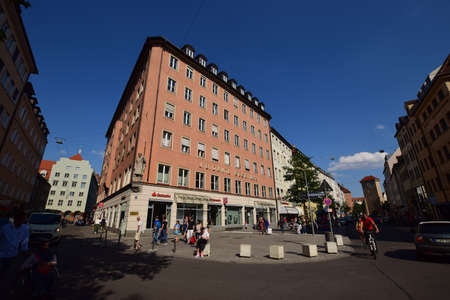MUNICH, GERMANY, AUGUST 20, 2015: People are walking though a shopping street towards Marienhof in Munich at the Evening, Germany