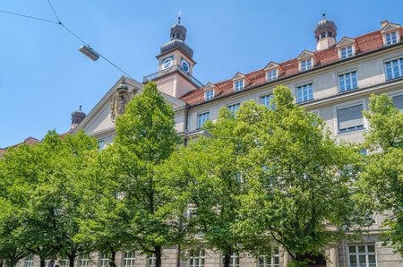 Munich, Germany - October 25, 2017: Ludwigstrasse and St.Ludwig church as seen from Odeonsplatz