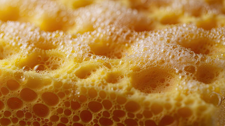 This close-up image showcases a detailed texture of a yellow sponge with distinctive holes and bubbles. Ideal for design, background use, and various creative projects.