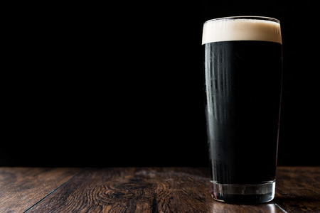 Rich, dark stout beer in a glass with a frothy head