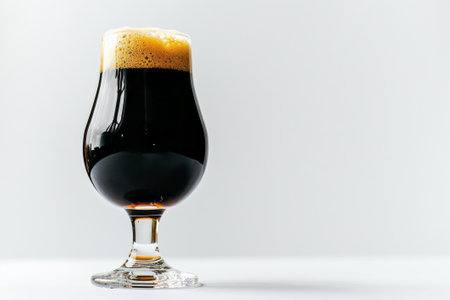 A captivating image of dark beer served in an elegant glass, showcasing rich color and frothy head, ideal for promoting craft beer or dining experiences.