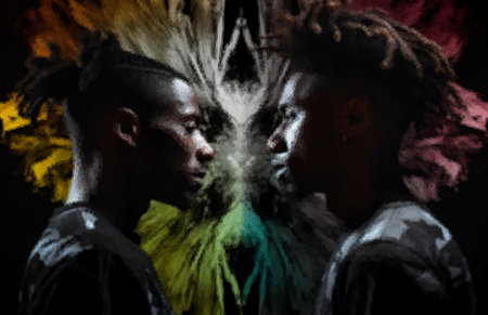 An artistic and innovative portrait of two faces in the style of Afrofuturism showcasing the beauty and resilience of black culture The use of contrast and collage techniques adds depth and modern aesthetics to the piece
