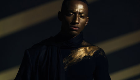 Fashion portrait of a young african american man with golden skin